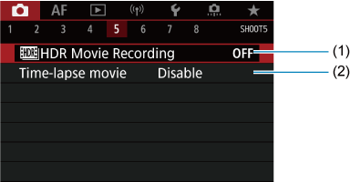 - (5) Canon Log settings/Nastavenia funkcie Canon Log