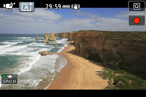 : AF-Servo pri videozázname] nastavená na možnosť [Enable/Povoliť], aby fotoaparát neustále zaostroval ().