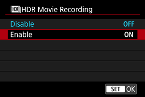 - Nahrávanie videozáznamu HDR nie je dostupné pri nastavení položky [