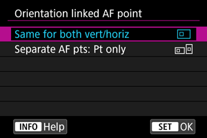 Môžete nastaviť samostatné body AF alebo rámy zóny AF, ktoré sa majú použiť pri vertikálnom a horizontálnom snímaní.
