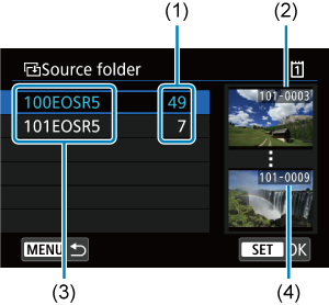 - Pri funkcii [Sel.Image/Vybrať snímku] nie je možné kopírovať snímky z viacerých priečinkov súčasne. Vyberte snímky, ktoré chcete z jedného priečinka skopírovať súčasne.