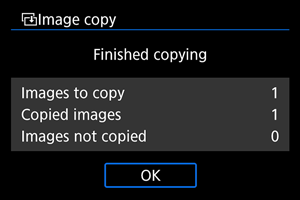 - Výsledky sa zobrazia po dokončení kopírovania. Výberom možnosti [OK] sa vrátite na obrazovku v kroku č. 2.