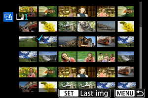 - Vyberte možnosť [Sel.Image/Vybrať snímku] a stlačte tlačidlo