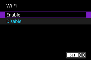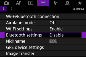 Ak sa nechcete pripojiť k fotoaparátu prostredníctvom funkcie Wi-Fi, keď je fotoaparát vypnutý, buď nastavte položku [Airplane mode/Režim v lietadle] na možnosť [On/Zap.] () alebo nastavte položku [Bluetooth settings/Nastavenia Bluetooth] na možnosť [Disable/Zakázať].