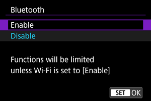 - Pripojenie Bluetooth spotrebováva energiu batérie aj po aktivovaní funkcie automatického vypnutia fotoaparátu. Preto pri používaní fotoaparátu môže byť kapacita batérie nízka.