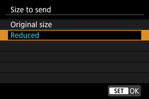 - V položke [Size to send/Veľkosť na odoslanie] môžete vybrať veľkosť odosielania snímok.