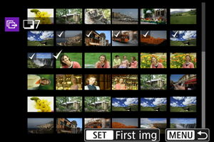 zobrazíte obrazovku na výber snímok. Na výber snímok použite volič