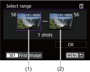 Zobraziteľné snímky môžete určiť výberom prvej a poslednej snímky zo snímok zoradených podľa čísla súboru.