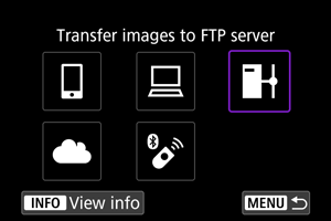 - Ak sa chcete po prenose automaticky odhlásiť a ukončiť pripojenie Wi-Fi, môžete na obrazovke [FTP transfer settings/Nastavenia prenosu FTP] nakonfigurovať úsporu energie ().