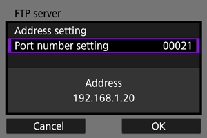 - Zvyčajne nastavte položku [Port number setting/Nastavenie čísla portu] na hodnotu 00021.
