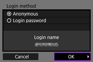 Ak prenos zlyhá, kontrolka prístupu na fotoaparáte bude blikať na červeno. V takom prípade sa po stlačení tlačidla zobrazí nasledujúca obrazovka a vyberte možnosť [