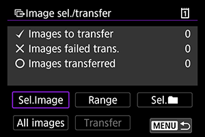 - Výberom položky [Select images not transferred/Vybrať neprenesené snímky] sa vyberú všetky neodoslané snímky na karte.