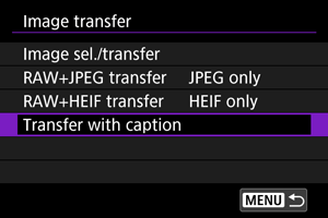 V položke [RAW+JPEG transfer/Prenos snímok RAW+JPEG] alebo [RAW+HEIF transfer/Prenos RAW+HEIF] môžete zadať typ snímok, ktoré sa majú preniesť.