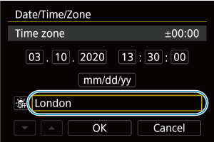- Ak sa požadované časové pásmo nenachádza v zozname, stlačte tlačidlo