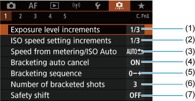- (4) Bracketing auto cancel/Automatické zrušenie stupňovania