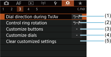 Výberom položky [: Clear all Custom Func. (C.Fn)/
