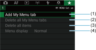 Delete all My Menu tabs/Odstrániť všetky karty ponuky Moja ponuka