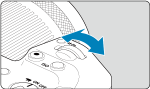 Kompenzáciu expozície možno nastaviť otáčaním ovládacieho prstenca objektívov RF alebo upevňovacích adaptérov pri súčasnom stlačení tlačidla spúšte do polovice v režime ,