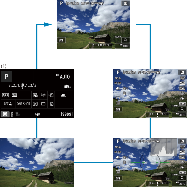 - Používa sa na operácie ako nastavenie citlivosti ISO, režim priebehu snímania, funkcia AF, vyváženie bielej a kompenzácia expozície s bleskom.