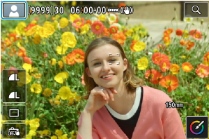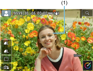- Za určitých podmienok snímania sa na objekte môže zobraziť bod AF (1).