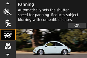 Pripojte objektív kompatibilný s režimom [] (Panning/Panorámovanie), ak chcete potlačiť rozmazanie objektu a zachovať jasné a ostré objekty.