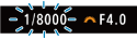 Blikanie hodnoty rýchlosti uzávierky „1/8000“ signalizuje preexponovanie.