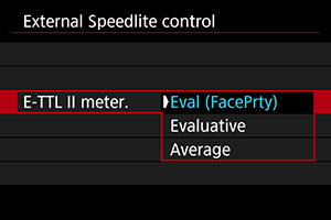 - Nastavenie [E-TTL II flash metering/Meranie blesku E-TTL II] predstavuje štandardný režim bleskov Speedlite radu EL/EX pre automatické fotografovanie s bleskom.