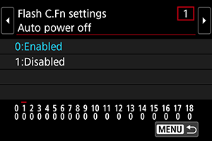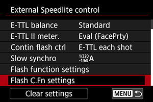 Vyberte položku [Flash C.Fn settings/Nastav. použív. funk. blesku].