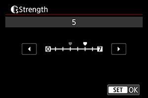 | Strength/Intenzita | 0: Slabé zvýraznenie obrysov | 7: Silné zvýraznenie obrysov | ||