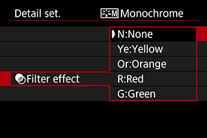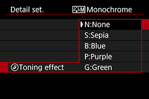 Ľubovoľný štýl Picture Style je možné prispôsobiť zmenou jeho predvolených nastavení. Podrobnosti o prispôsobení funkcie [Monochrome/Monochromatický] nájdete v časti Monochromatické nastavenie.