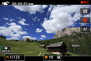 : AF-Servo pri videozázname] nastavená na možnosť [Enable/Povoliť], aby fotoaparát neustále zaostroval ().