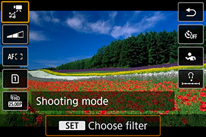V režime (kreatívne filtre) môžete nahrávať videozáznamy s jedným z piatich použitých efektov filtrov: Sen, Staré filmy, Spomienka, Dramatický čiernobiely alebo Videozáznam s efektom miniatúry.