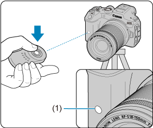 - Namierte diaľkový ovládač smerom k snímaču diaľkového ovládania fotoaparátu (1) a stlačte tlačidlo uvoľnenia (prenosové tlačidlo).