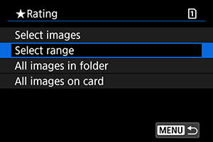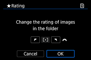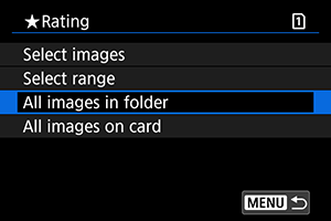 : Hodnotenie] vyberiete možnosť [All images in folder/Všetky snímky v priečinku] alebo [All images on card/Všetky snímky na karte], ohodnotia sa všetky snímky v priečinku alebo na karte.