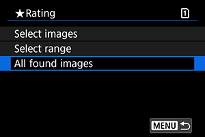 - Ak vyberiete položku [All found images/Všetky nájdené snímky], všetky snímky filtrované podľa podmienok vyhľadávania sa ohodnotia podľa špecifikácií.
