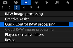 Vyberte položku [: Quick Control RAW processing/: RAW spracovanie rýchlym ovládaním].