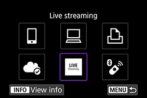 - Po pripojení fotoaparátu k image.canon sa pridá ikona [Live streaming/Živý prenos].