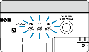 - Ak počas kalibrácie tri indikátory nabíjania blikajú, vyberte batériu a kontaktujte predajcu alebo najbližšie servisné stredisko spoločnosti Canon.