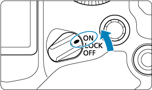 Fotoaparát sa zapne. Je aktivované uzamknutie viacerých funkcií ().