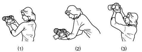 - Fotoaparát držte nehybne, ako je to znázornené na obrázku Držanie fotoaparátu.