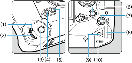- (9) Tlačidlo uzamknutia AE pri zvislom držaní