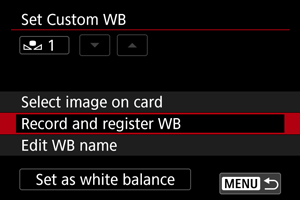 Vyberte položku [Record and register WB/Zaznamenať a zaregistrovať vyváženie bielej].