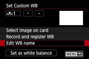 Vyberte položku [Edit WB name/Upraviť názov vyváženia bielej].