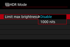 - Keď je nastavená možnosť [Disable/Zakázať], maximálny jas nie je obmedzený. Odporúča sa, keď budete prezerať snímky na monitore s podporou displeja s jasom presahujúcim 1000 nitov.