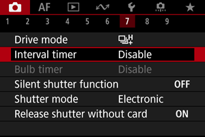 - Snímanie s intervalovým časovačom sa zruší a obnoví na hodnotu [Disable/Zakázať], ak nastavíte vypínač do polohy