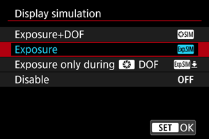 - Možnosť [Exposure+DOF/Expozícia+DOF] nie je pre niektoré objektívy k dispozícii.