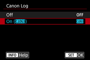 : Nastavenia funkcie Canon Log] nastavenou na možnosť [On (