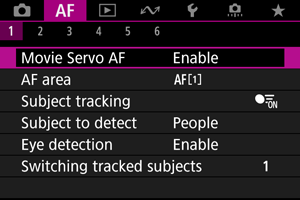 - Funkcia AF-Servo pri videozázname sa pozastaví počas transfokácie alebo zväčšeného zobrazenia.