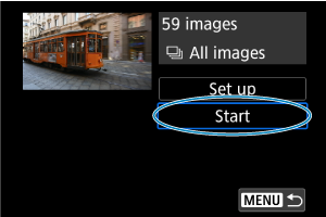 - Nastavte položky [Display time/Čas zobrazenia] a [Repeat/Opakovanie] (opakované prehrávanie) pre statické zábery.