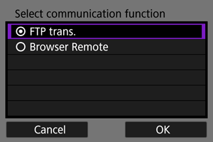 - Výberom možnosti [Select from list/Vybrať zo zoznamu], keď už sú komunikačné funkcie zaregistrované vo fotoaparáte, môžete použiť zaregistrované nastavenia.